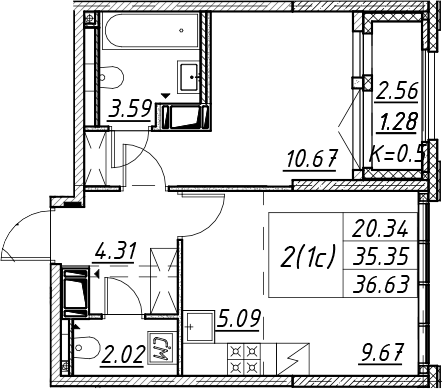Цена за м2: 341 845₽- Отделка: Подчистовая