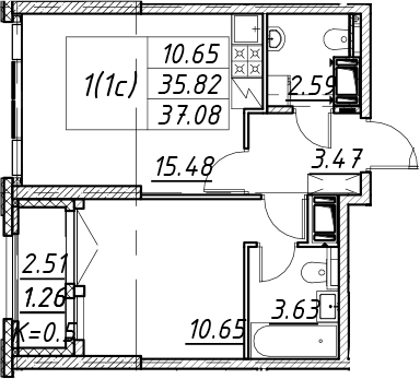 - S общая: 35.82 м2