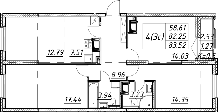 - Комнат: 4Е-к.кв