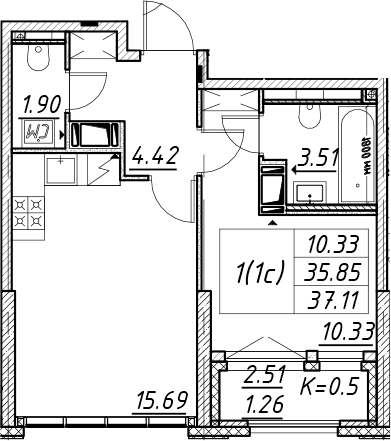 Цена за м2: 336 009₽- Отделка: Подчистовая