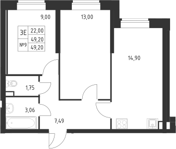 - Комнат: 3Е-к.кв