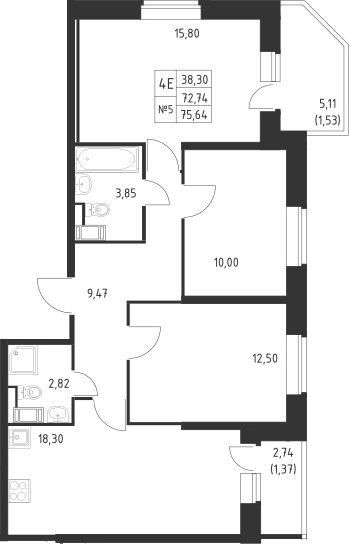 Цена за м2: 282 871₽- Отделка: Чистовая