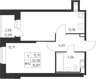 - S общая: 34.58 м2