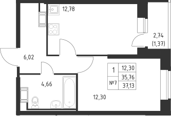 - S общая: 35.76 м2