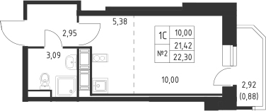 - S общая: 21.42 м2