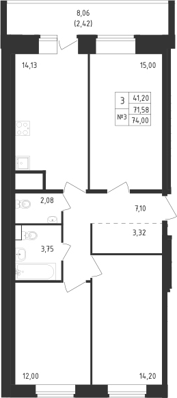 - S общая: 71.58 м2