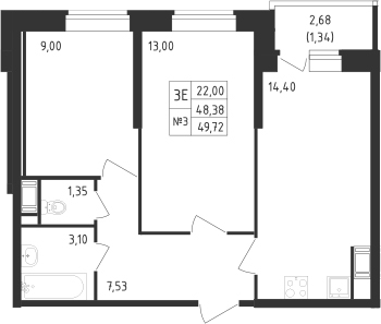 - Комнат: 3Е-к.кв