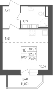 - S общая: 22.67 м2