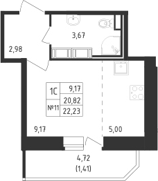 - S общая: 20.82 м2