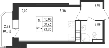 - S общая: 21.42 м2