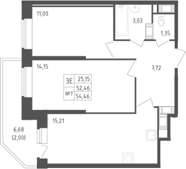 - S общая: 52.46 м2