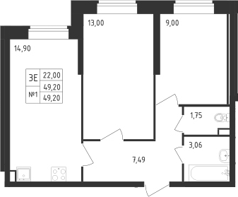 - Комнат: 3Е-к.кв