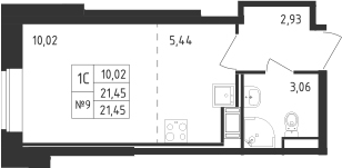 - S общая: 21.45 м2