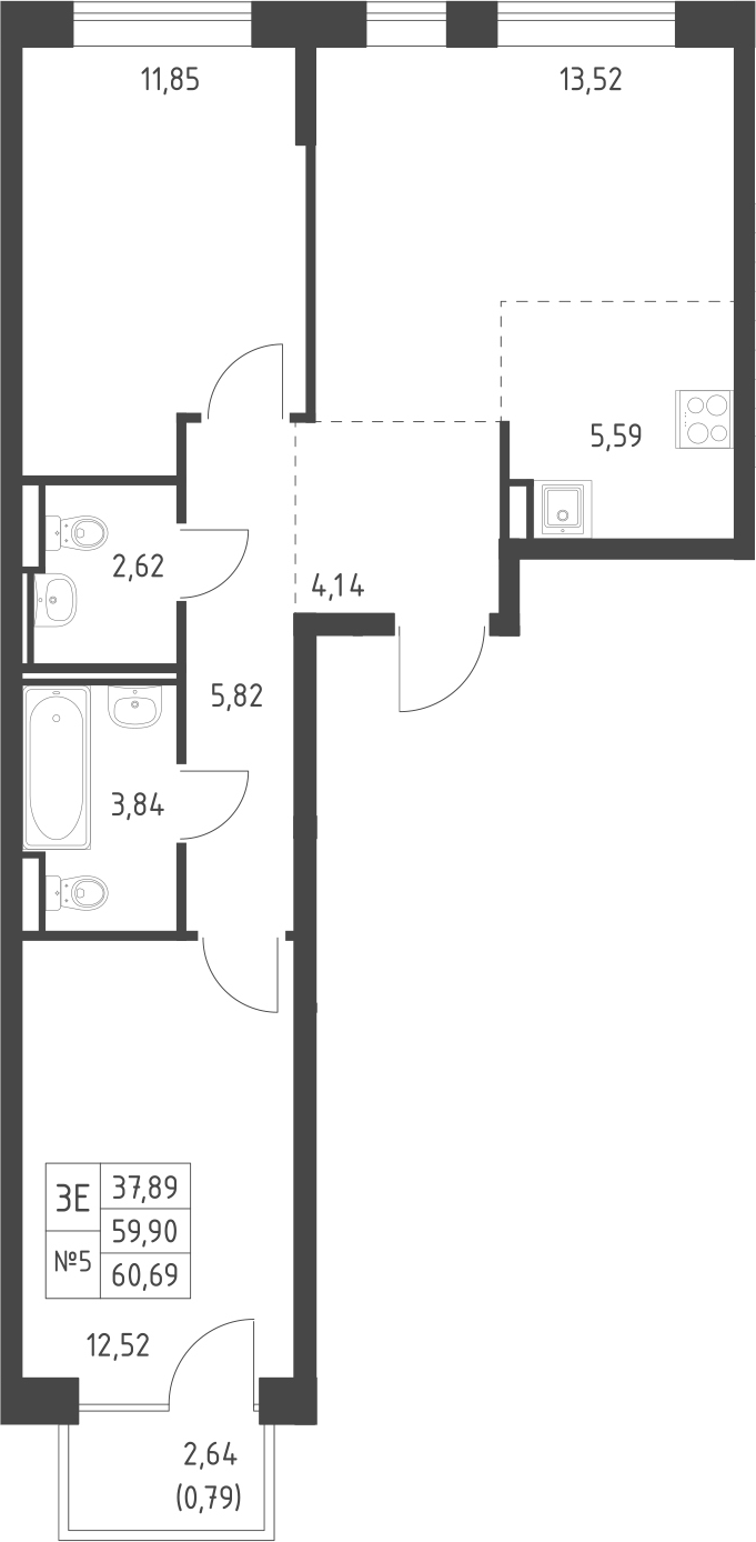 - Комнат: 3Е-к.кв
