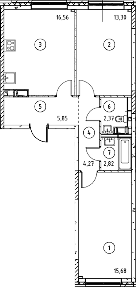 - Комнат: 3Е-к.кв