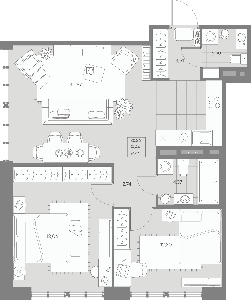 В жилом комплексе предложено множество планировочных решений: от студий до просторных 3-х комнатных квартир европейского формата. Сдаются они без отделки, с панорамными окнами и высотой потолков от 2,9 до 4 метров.