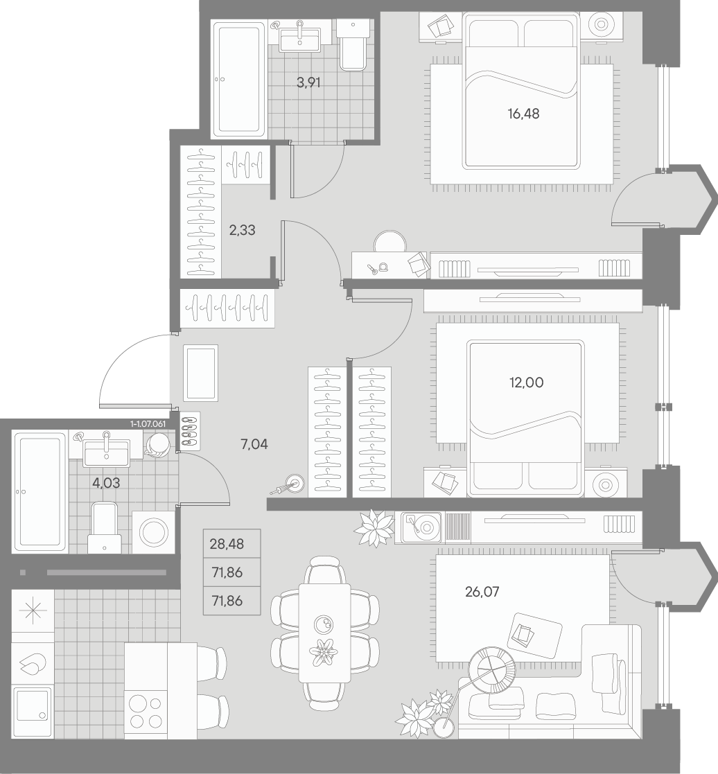 - S общая: 71.86 м2