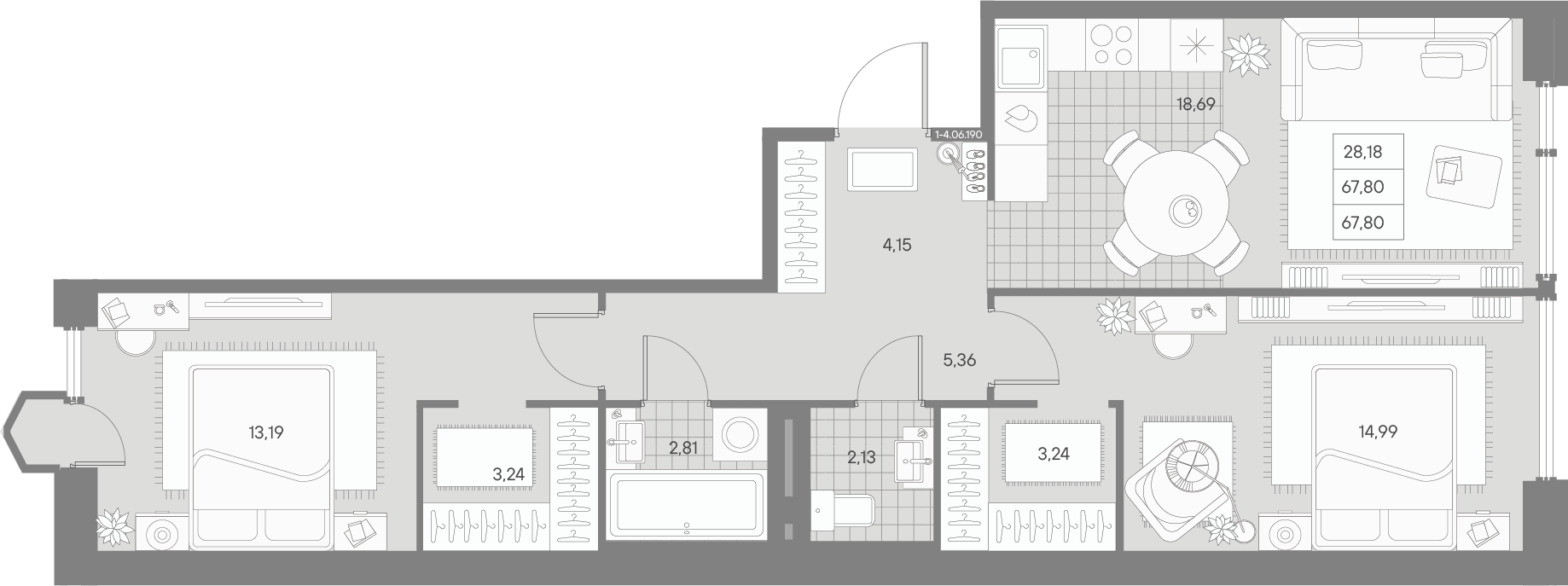В жилом комплексе предложено множество планировочных решений: от студий до просторных 3-х комнатных квартир европейского формата. Сдаются они без отделки, с панорамными окнами и высотой потолков от 2,9 до 4 метров.