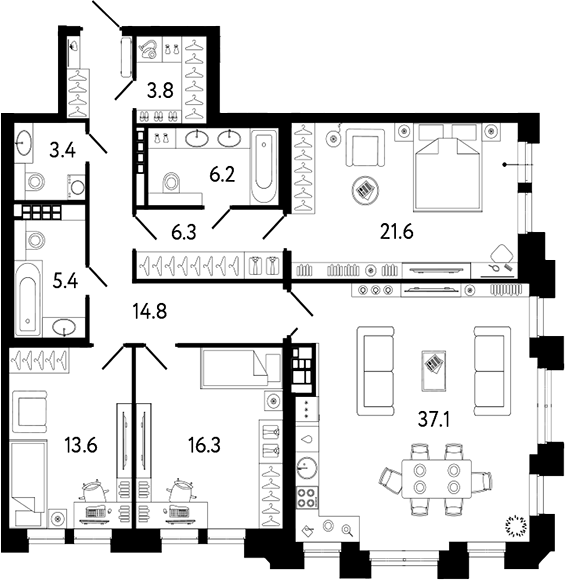 - Комнат: 4Е-к.кв