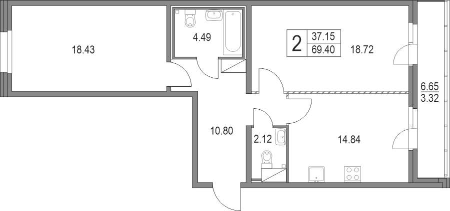 - S общая: 69.4 м2