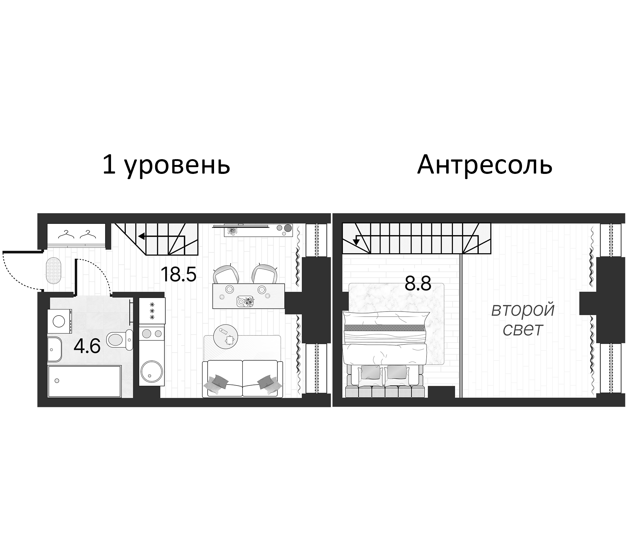 В проекте представлено множество планировочных решений. Все лоты сдаются с чистовой отделкой, высотой потолков 4,6 метров и увеличенными окнами.