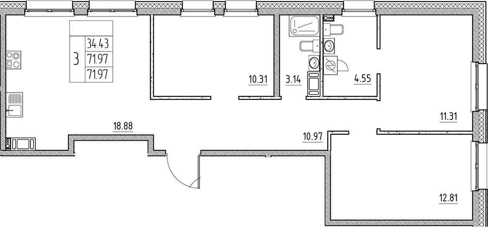 - S общая: 71.97 м2