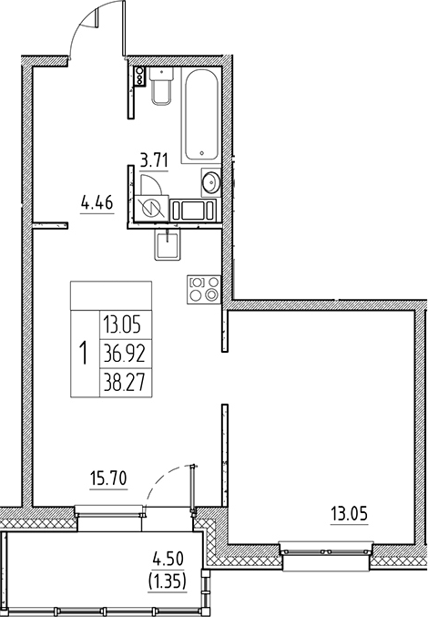 - S общая: 36.92 м2