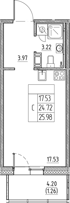 - S общая: 24.72 м2