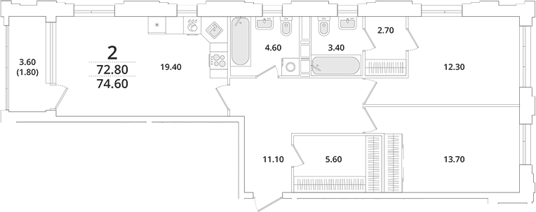 - S общая: 72.8 м2