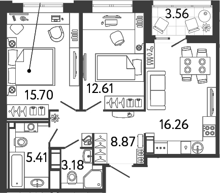 В комплексе представлен обширный выбор планировок: от студий до квартир с 4 комнатами. Площадь квартир – от 24 до 90 кв. метров. Квартиры сдаются с подчистовой отделкой и потолками высотой 2,7 метров.