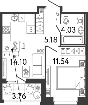 - Комнат: 1-к.кв