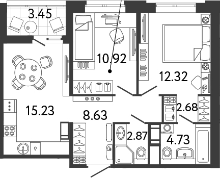 Цена за м2: 303 374₽- Отделка: Подчистовая