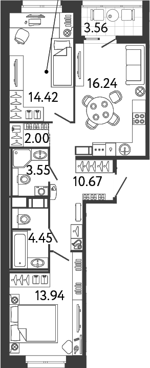 В комплексе представлен обширный выбор планировок: от студий до квартир с 4 комнатами. Площадь квартир – от 24 до 90 кв. метров. Квартиры сдаются с подчистовой отделкой и потолками высотой 2,7 метров.