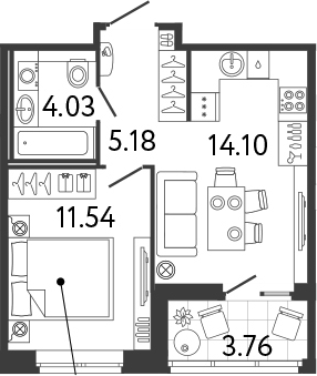 - Комнат: 1-к.кв