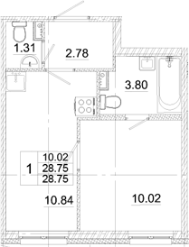 - S общая: 28.75 м2