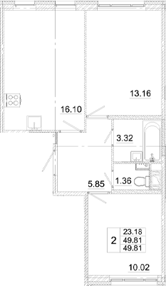 - S общая: 49.81 м2