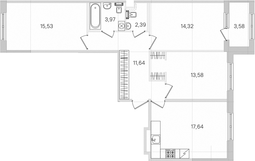 В проекте представлено множество планировочных решений — квартиры с террасами и французскими балконами, квартиры с окнами в санузле, а также лоты с саунами. На последних этажах комплекса высота потолков составляет 3 метра, в остальных квартирах — 2,7 метра. Все лоты имеют увеличенные оконные проемы. Сдаются они с отделкой White Box и чистовой отделкой.