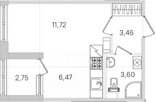 - Комнат: Студия