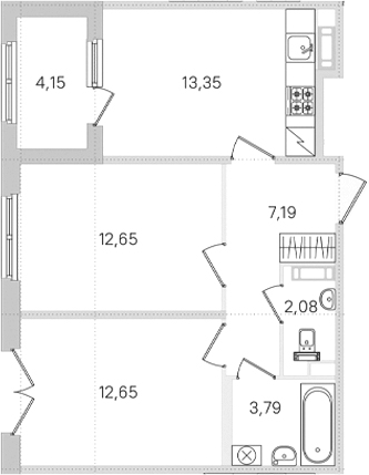 - Комнат: 3Е-к.кв