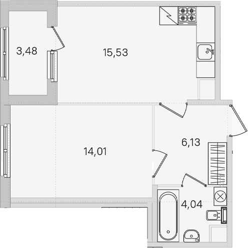 - Комнат: 1-к.кв