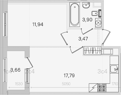- Комнат: 1-к.кв