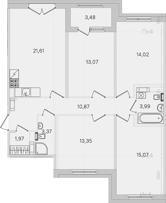 Цена за м2: 253 200₽- Отделка: Чистовая