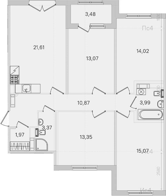 Цена за м2: 254 200₽- Отделка: Чистовая