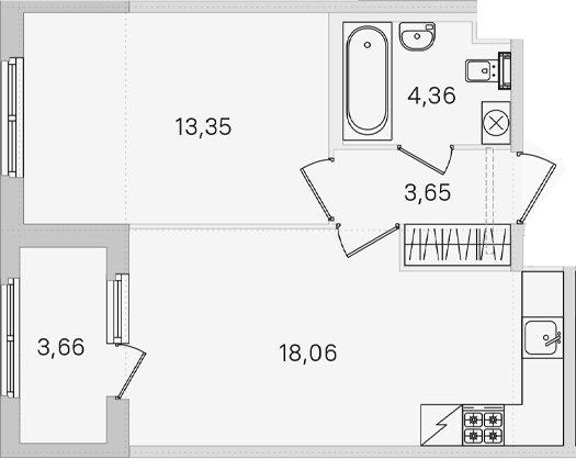 - Комнат: 1-к.кв