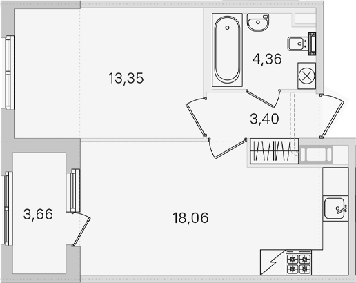 - Комнат: 1-к.кв
