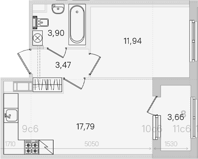 - Комнат: 1-к.кв