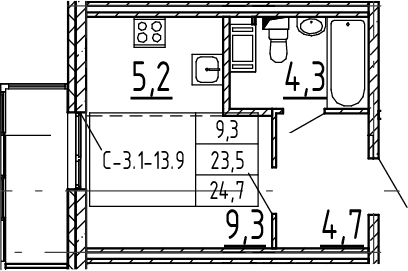 - S общая: 23.5 м2