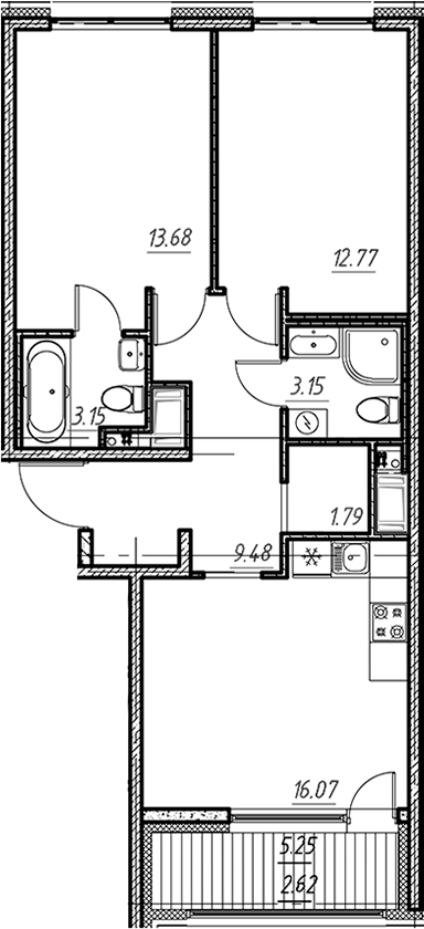 - Комнат: 3Е-к.кв