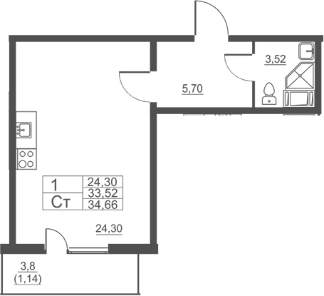 - S общая: 33.52 м2