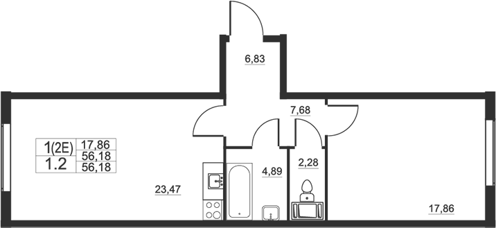 - S общая: 56.18 м2